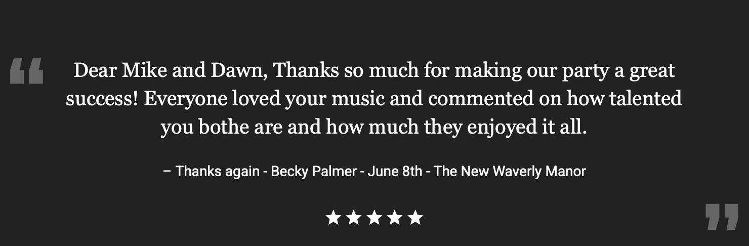 Below are some reviews from of our clients we have performed for. Click on the navigation tabs to move from one to the next.