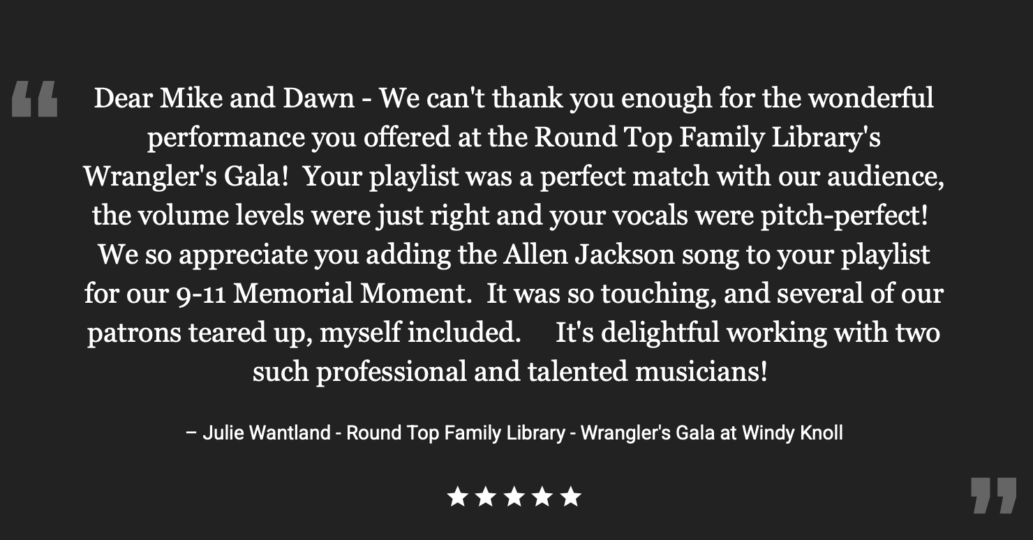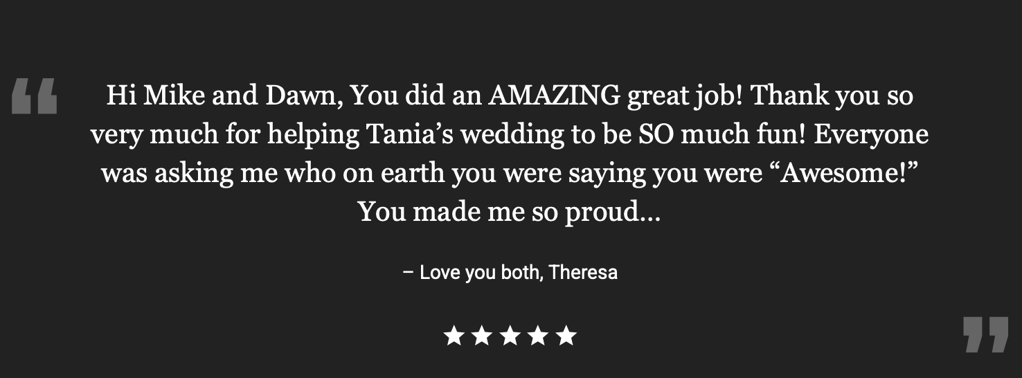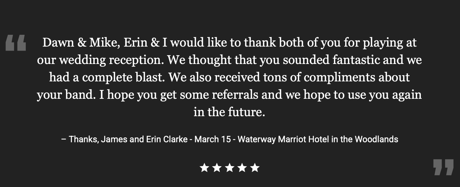 Below are some reviews from of our clients we have performed for. Click on the navigation tabs to move from one to the next.